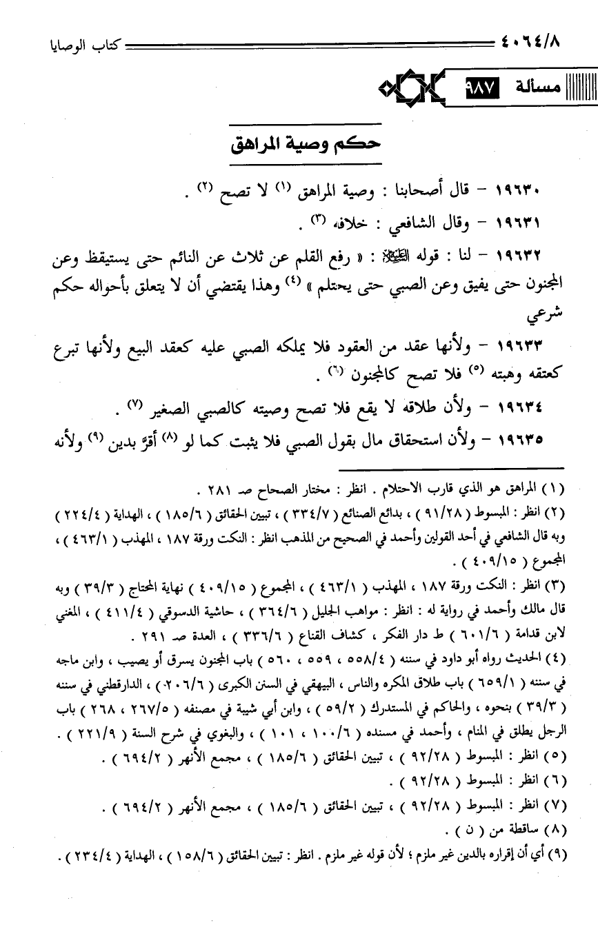 19630 - قال أصحابنا: وصية المراهق لا تصح.