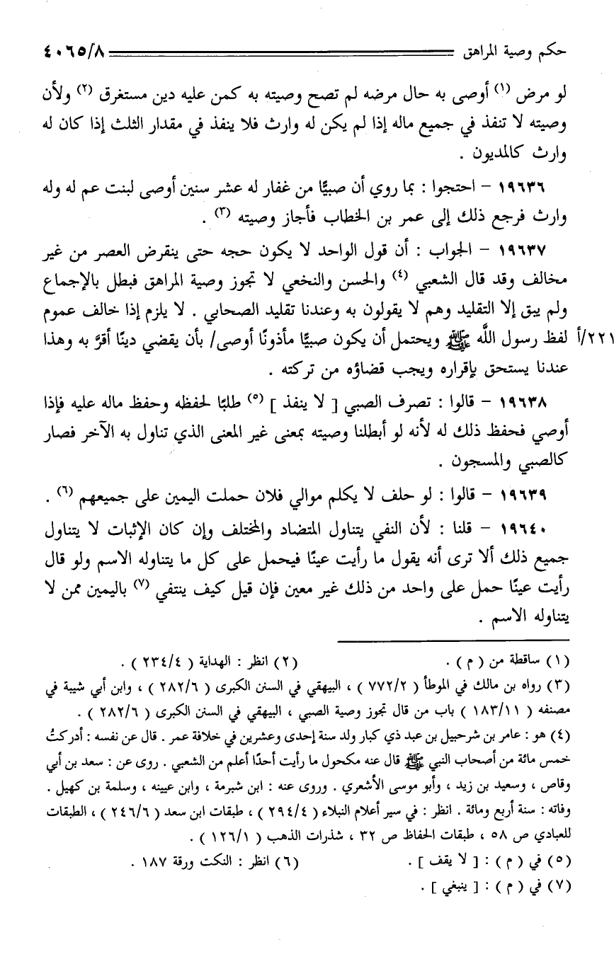 19637 - الجواب: أن قول الواحد لا يكون حجه حتى ينقرض العصر من غير مخالف وقد قال الشعبي والحسن والنخعي لا تجوز وصية المراهق فبطل بالإجماع ولم يبق إلا التقليد وهم لا يقولون به وعندنا تقليد الصحابي. لا يلزم إذا خالف عموم 22/ألفظ رسول الله - صلى الله عليه وسلم - ويحتمل أن يكون صبيا مأذونا أوصى/بأن يقضي دينا أقر به وهذا عندنا يستحق بإقراره ويجب قضاؤه من تركته.