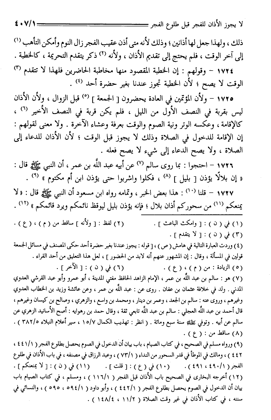 1726 - احتجوا: بما روى سالم عن أبيه عبد الله بن عمر، أن النبي - صلى الله عليه وسلم - قال: ((إن بلالًا يؤذن بليل، فكلوا واشربوا حتى يؤذن ابن أم مكتوم)).