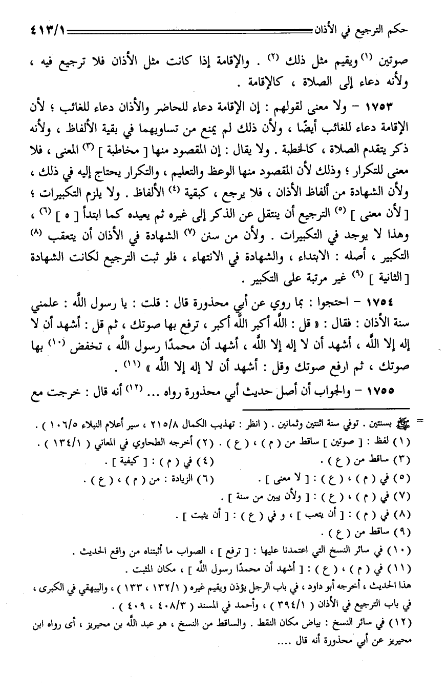 1755 - والجواب أن أصل حديث أبي محذورة رواه ... أنه قال: خرجت مع