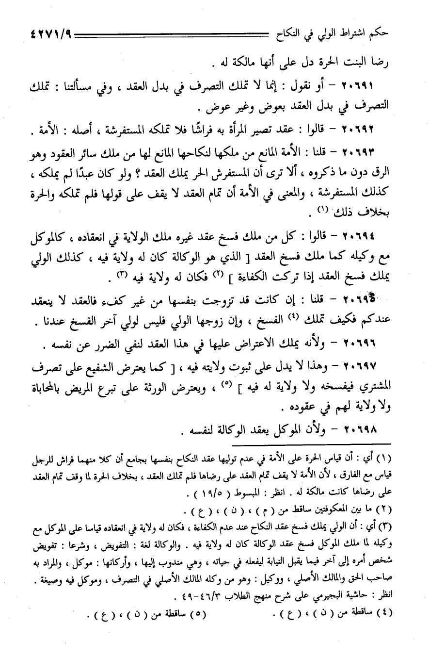 20694 - قالوا: كل من ملك فسخ عقد غيره ملك الولاية في انعقاده، كالموكل مع وكيله كما ملك فسخ العقد [الذي هو الوكالة كان له ولاية فيه، كذلك الولي يملك فسخ العقد إذا تركت الكفاءة] فكان له ولاية فيه.