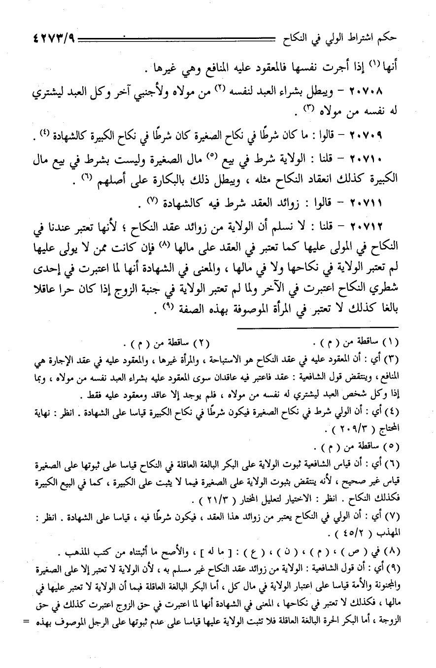 20710 - قلنا: الولاية شرط في بيع مال الصغيرة وليست بشرط في بيع مال الكبيرة كذلك انعقاد النكاح مثله، ويبطل ذلك بالبكارة على أصلهم.