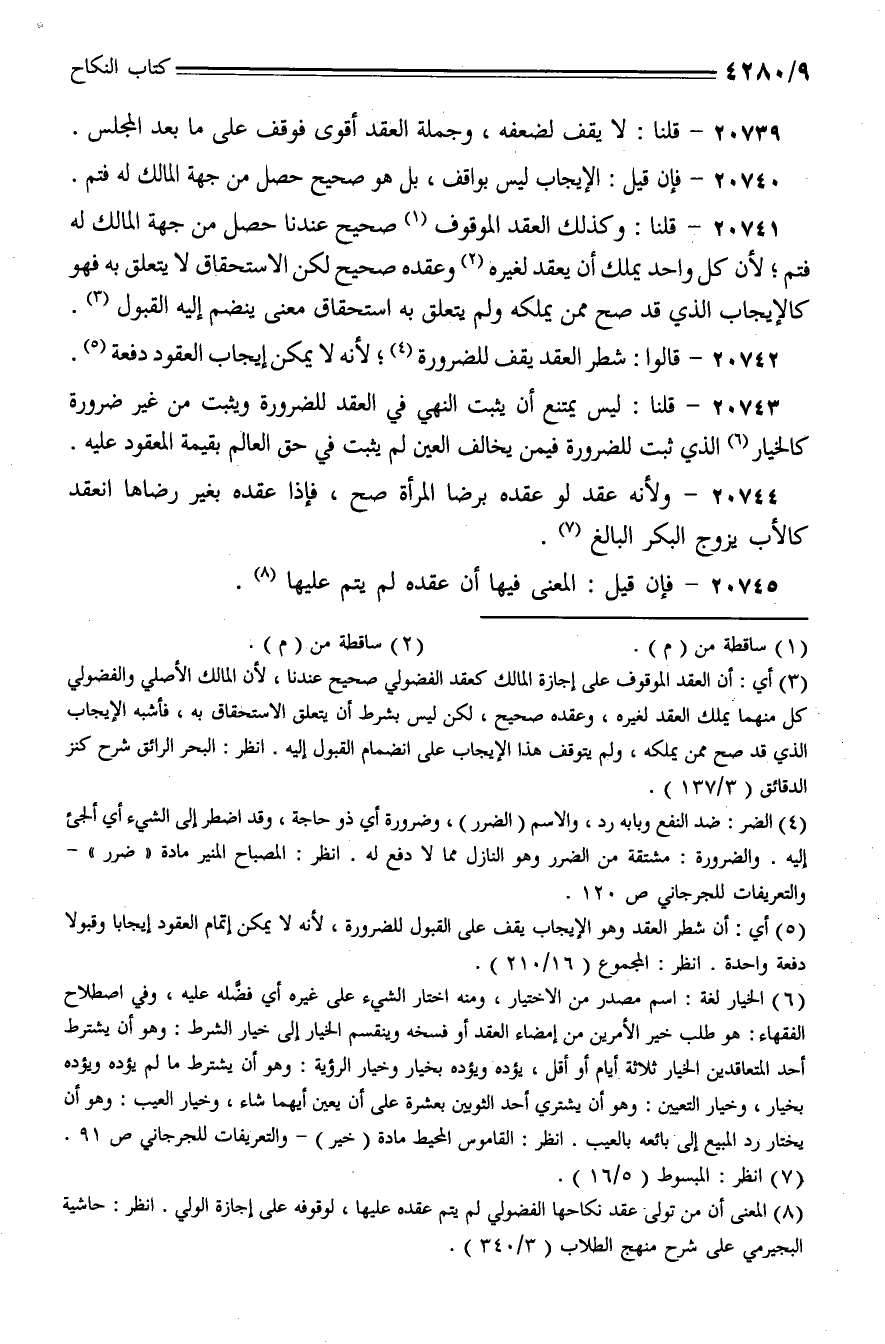 20742 - قالوا: شطر العقد يقف للضرورة؛ لأنه لا يمكن إيجاب العقود دفعة.
