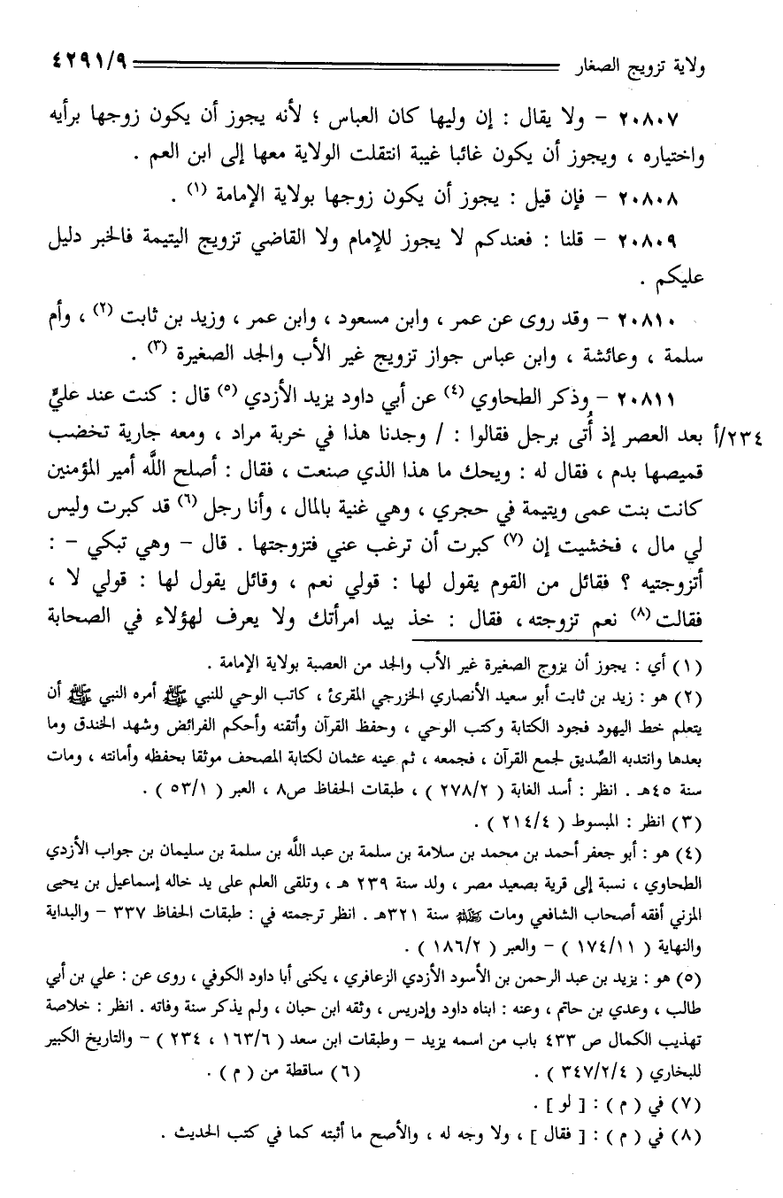 20810 - وقد روى عن عمر، وابن مسعود، وابن عمر، وزيد بن ثابت، وأم سلمة، وعائشة، وابن عباس جواز تزويج غير الأب والجد الصغيرة.