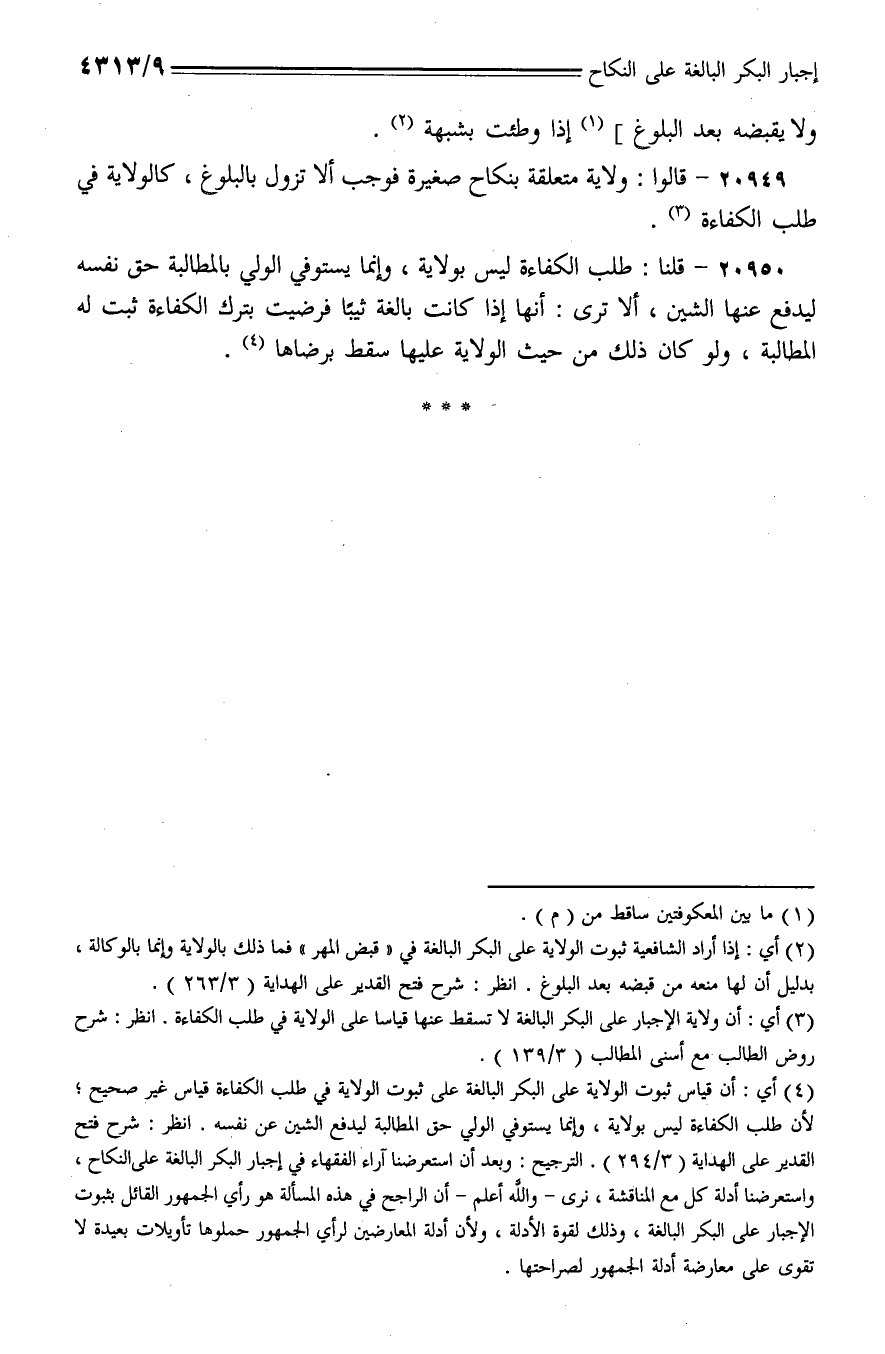 20950 - قلنا: طلب الكفاءة ليس بولاية، وإنما يستوفي الولي بالمطالبة حق نفسه ليدفع عنها الشين، ألا ترى: أنها إذا كانت بالغة ثيبًا فرضيت بترك الكفاءة ثبت له المطالبة، ولو كان ذلك من حيث الولاية عليها سقط برضاها.