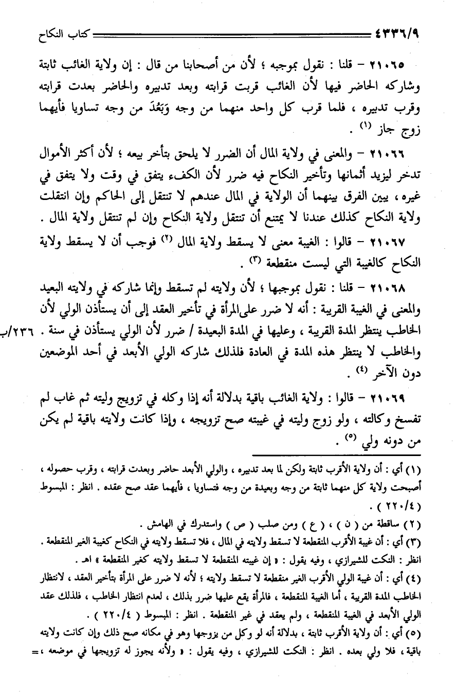 21067 - قالوا: الغيبة معنى لا يسقط ولاية المال فوجب أن لا يسقط ولاية النكاح كالغيبة التي ليست منقطعة.