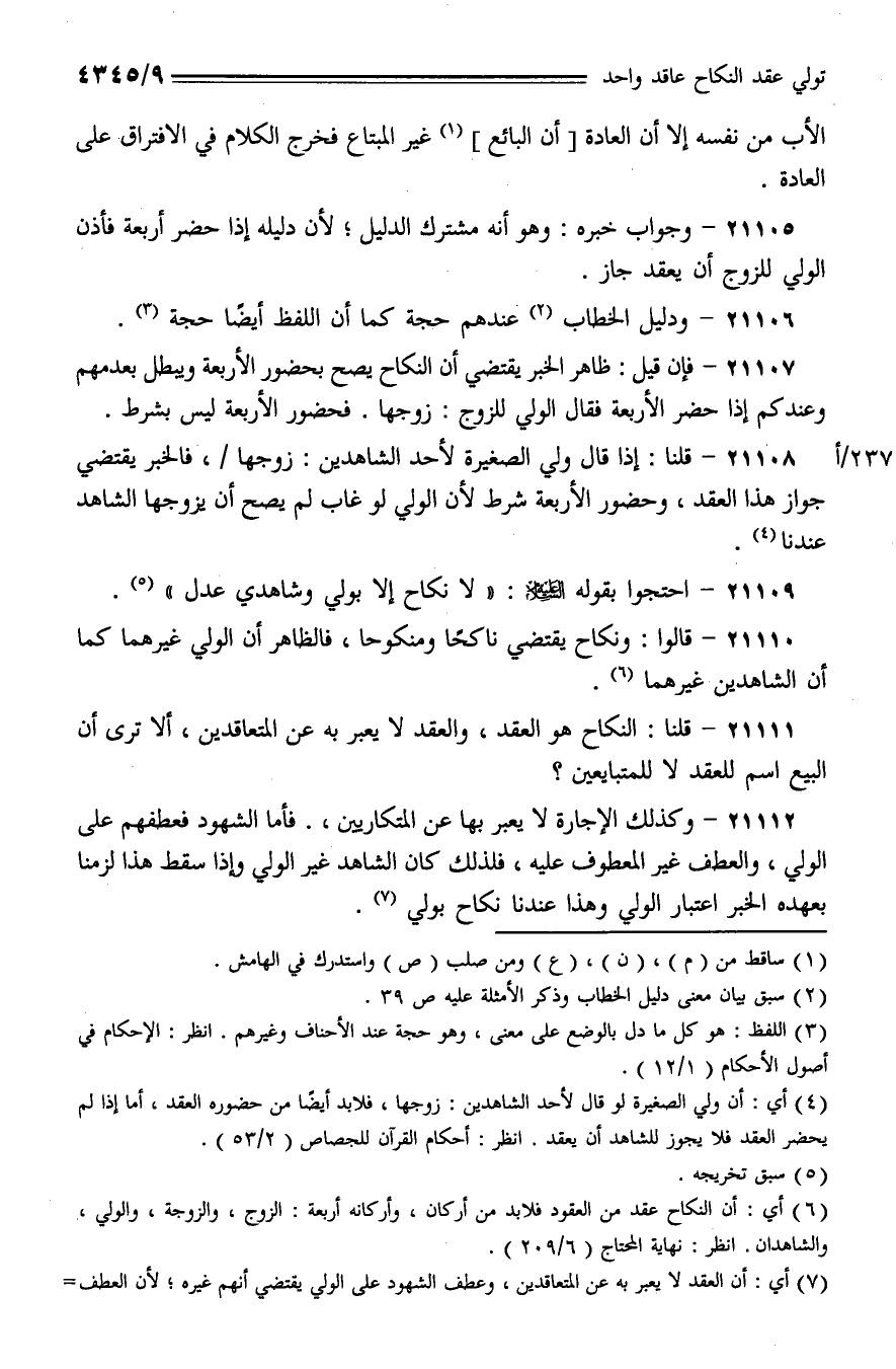 21105 - وجواب خبره: وهو أنه مشترك الدليل؛ لأن دليله إذا حضر أربعة فأذن الولي للزوج أن يعقد جاز.