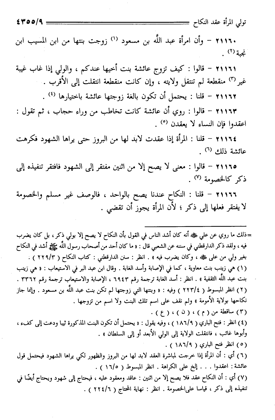 21164 - قلنا: المرأة إذا عقدت لابد لها من البروز حتى يراها الشهود فكرهت عائشة ذلك.