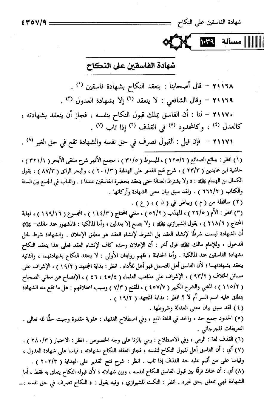 21170 - لنا: أن الفاسق يملك قبول النكاح بنفسه، فجاز أن ينعقد بشهادته، كالعدل، وكالمحدود في القذف إذا تاب.