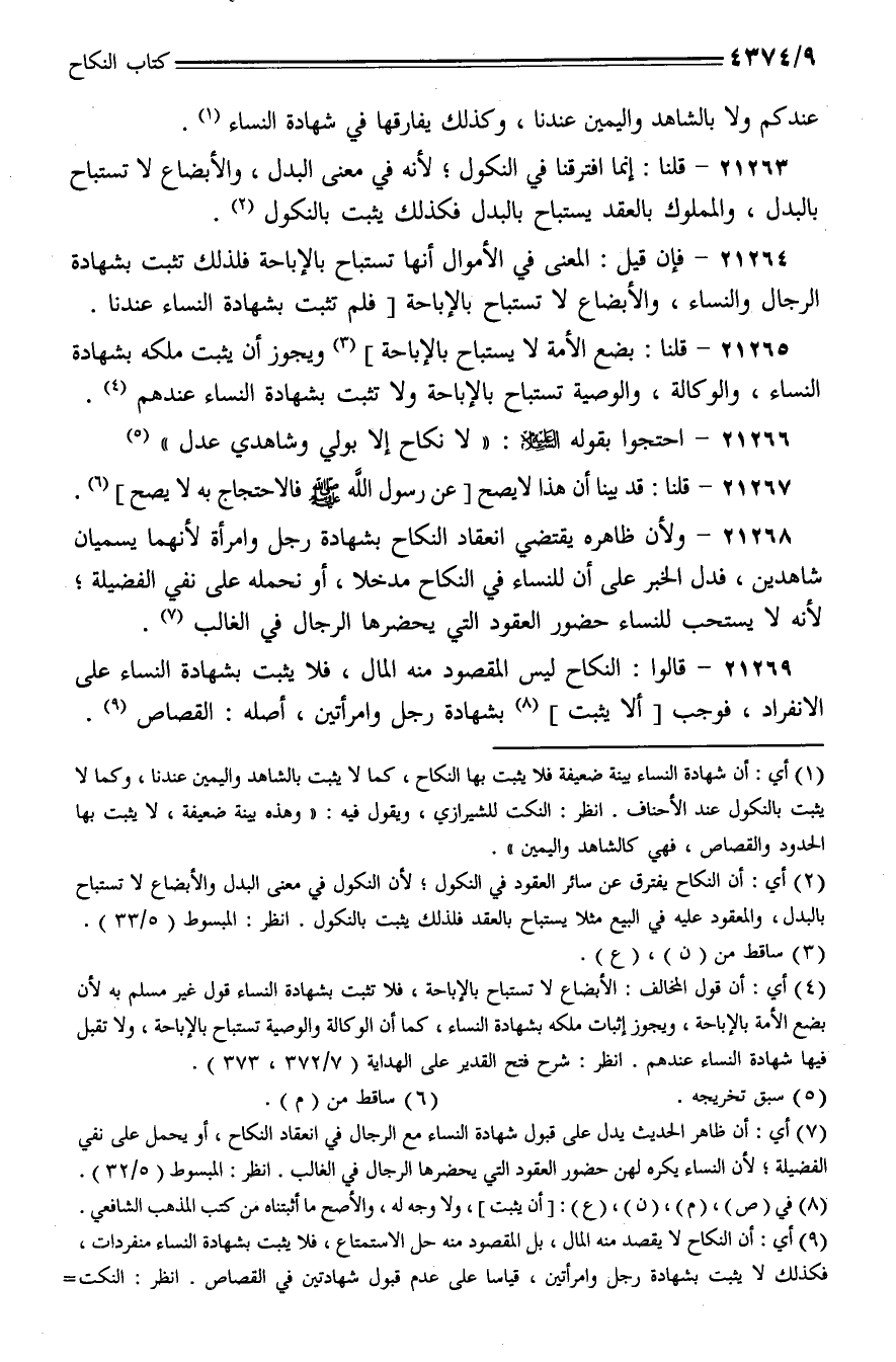 21264 - فإن قيل: المعنى في الأموال أنها تستباح بالإباحة فلذلك تثبت بشهادة الرجال والنساء، والأبضاع لا تستباح بالإباحة [فلم تثبت بشهادة النساء عندنا.