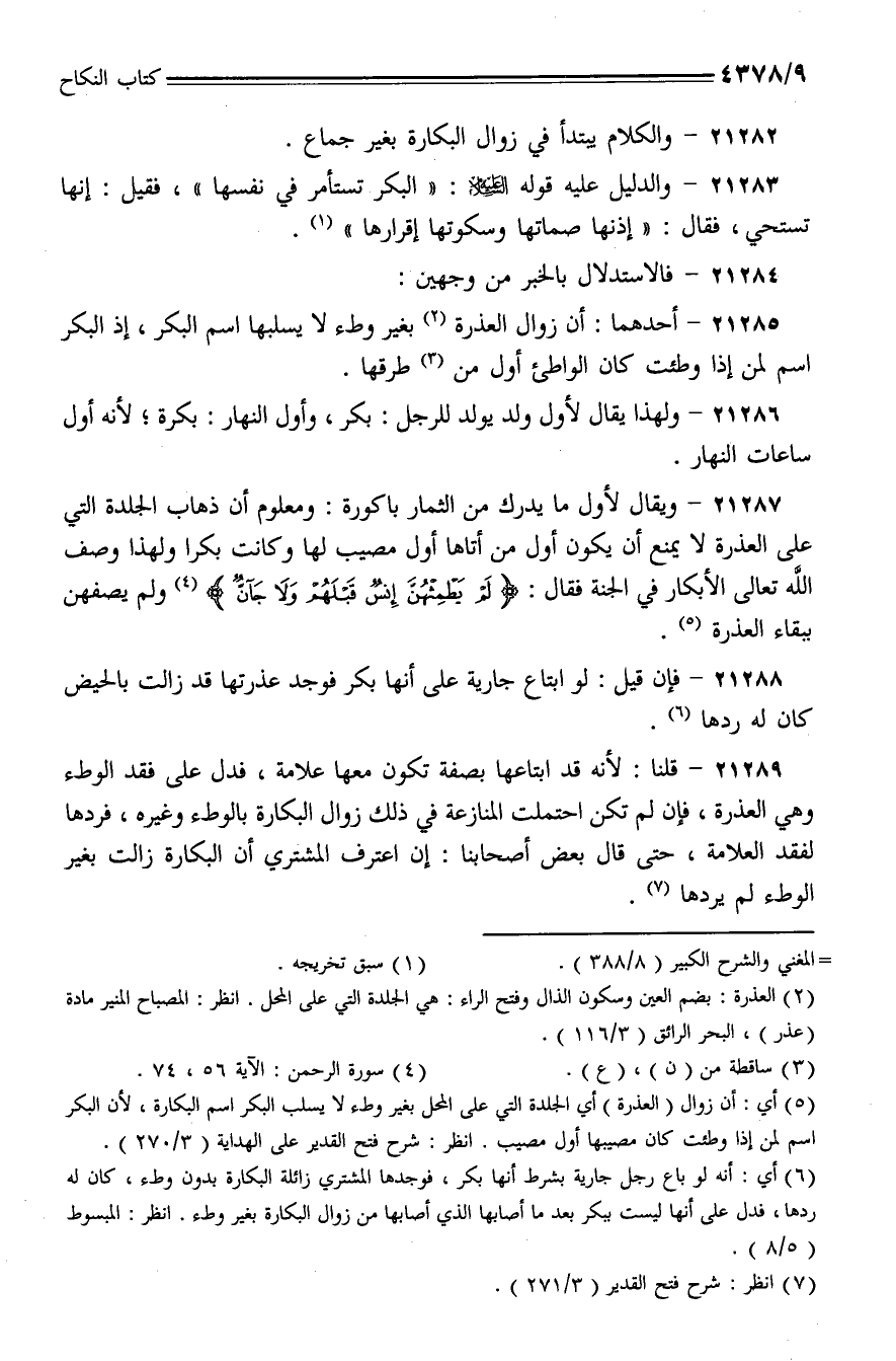 21282 - والكلام يبتدأ في زوال البكار بغير جماع.