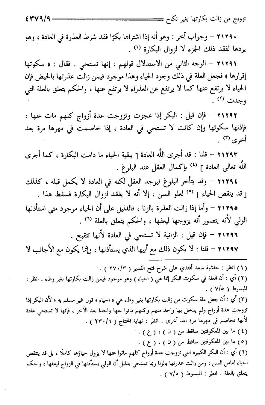 21293 - قلنا: قد أجرى الله العادة [ببقية الحياء ما دامت البكارة، كما أجرى الله تعالى العادة] بإكمال العقل عند البلوغ.