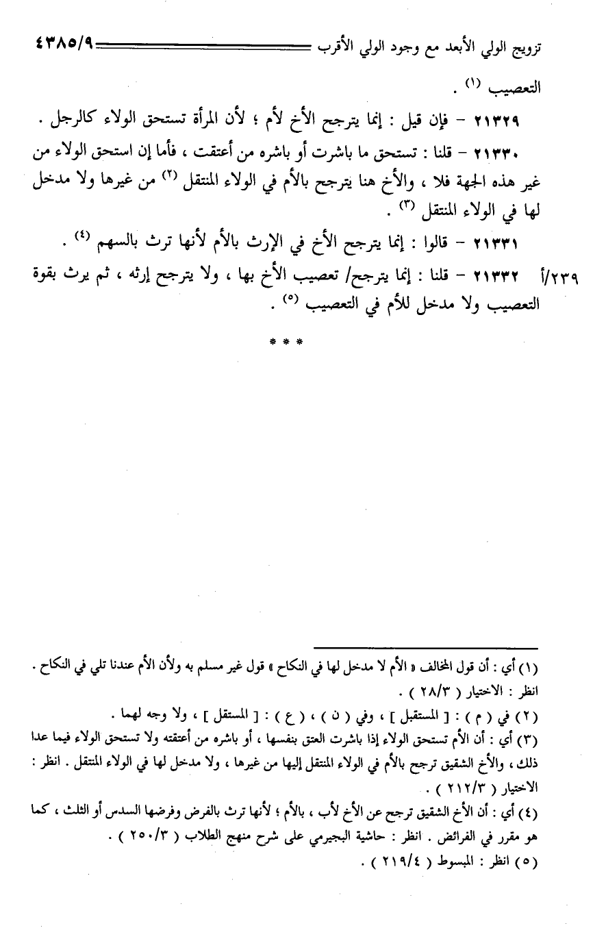 21332 - قلنا: إنما يترجح/ تعصيب الأخ بها، ولا يترجح إرثه، ثم يرث بقوة التعصيب ولا مدخل للأم في التعصيب.