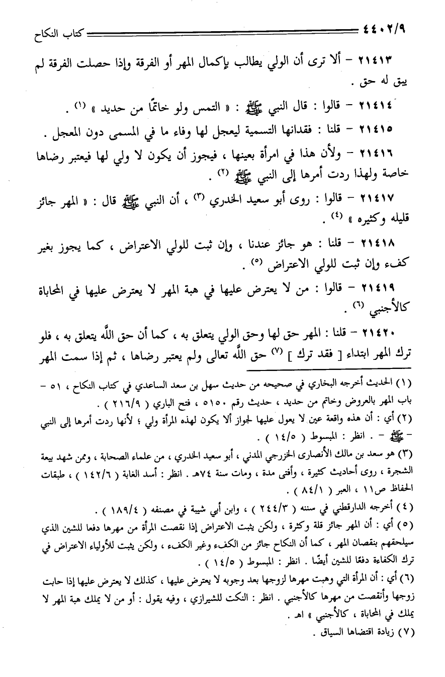 21417 - قالوا: روى أبو سعيد الخدري، أن النبي - صلى الله عليه وسلم - قال: (المهر جائز قليله وكثيره).