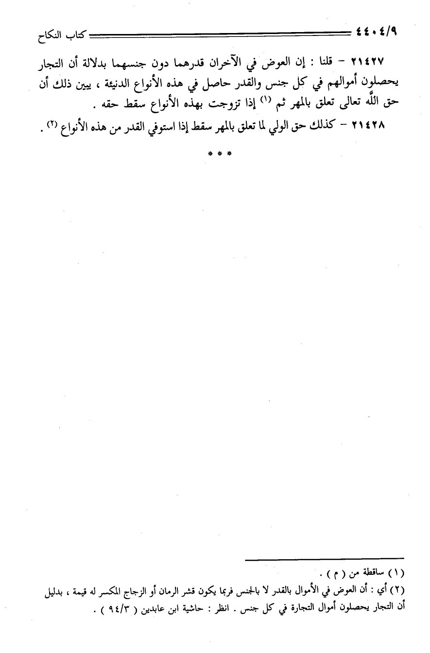 21427 - قلنا: إن العوض في الآخران قدرهما دون جنسهما بدلالة أن التجار يحصلون أموالهم في كل جنس والقدر حاصل في هذه الأنواع الدنيئة، يبين ذلك أن حق الله تعالى بالمهر ثم إذا تزوجت بهذه الأنواع سقط حقه.