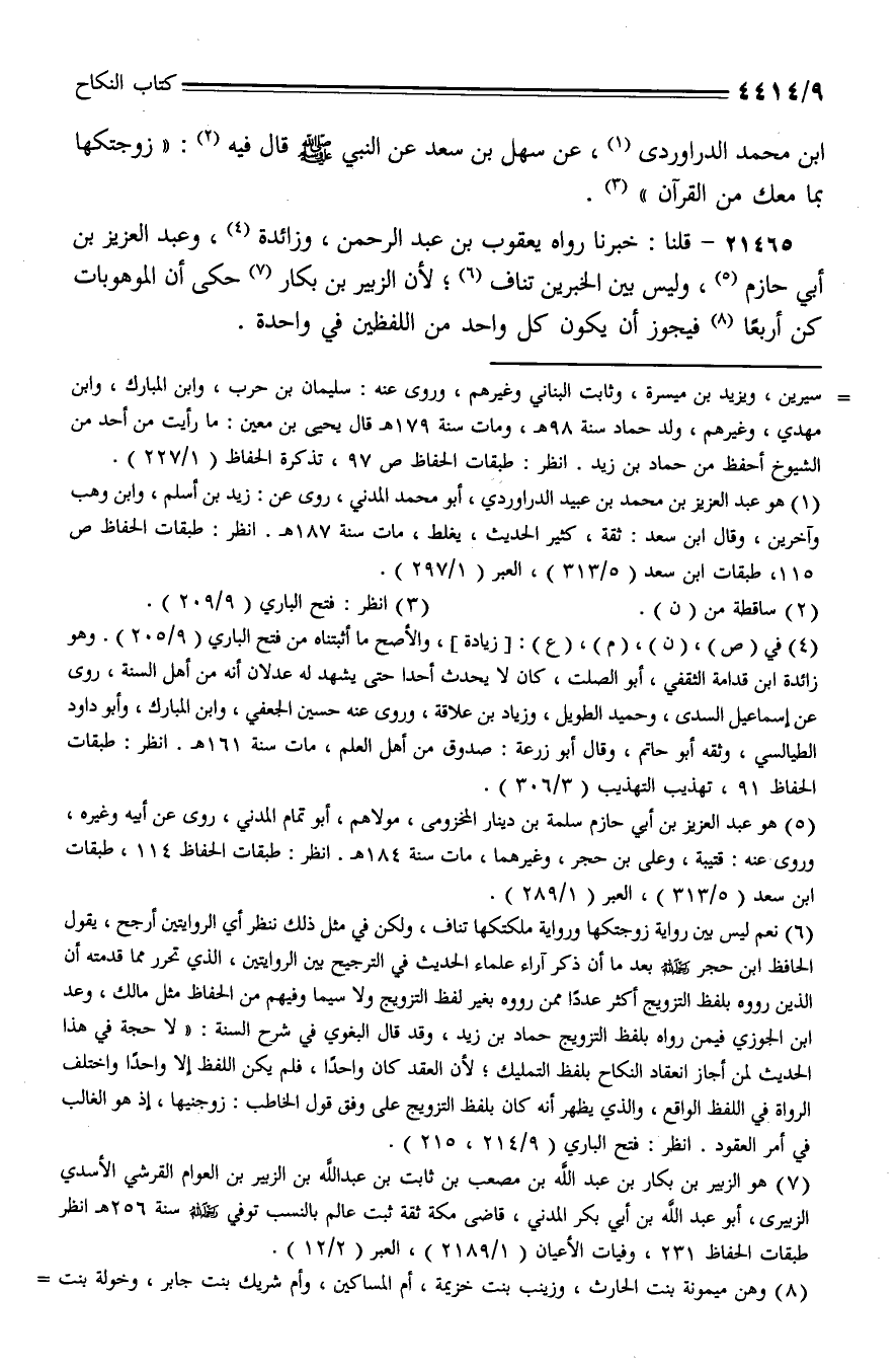 ابن محمد الدراوردي، عن سهل بن سعد عن النبي - صلى الله عليه وسلم - قال فيه: (زوجتكها بما معك من القرآن).