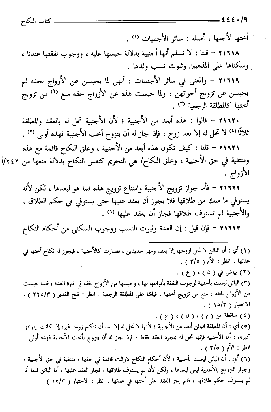21618 - قلنا: لا نسلم أنها أجنبية بدلالة حبسها عليه، ووجوب نفقتها عندنا، وسكناها على المذهبين وثبوت نسب ولدها.