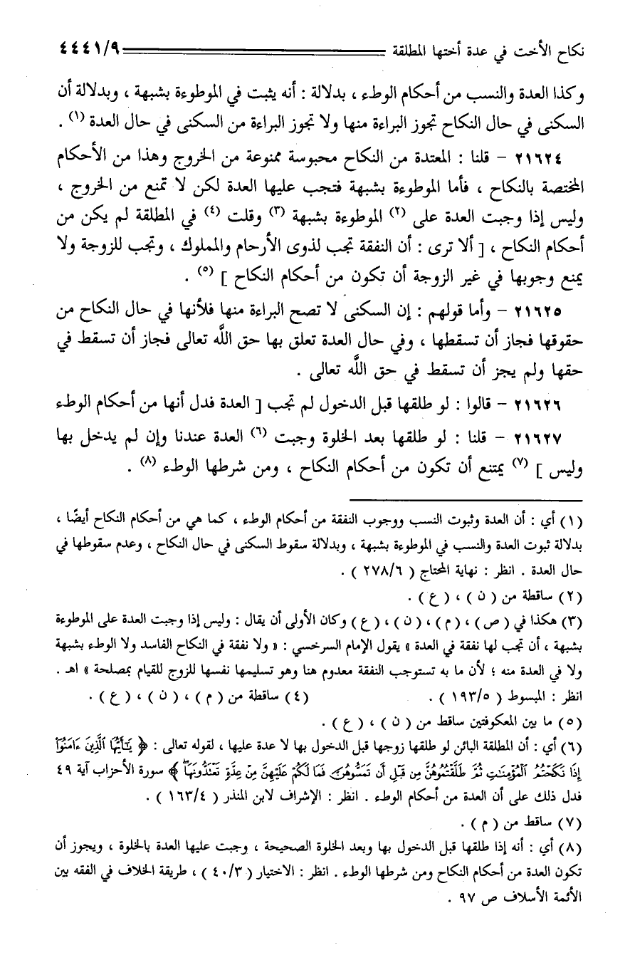 21626 - قالوا: لو طلقها قبل الدخول لم تجب [العدة فدل أنها من أحكام الوطء.