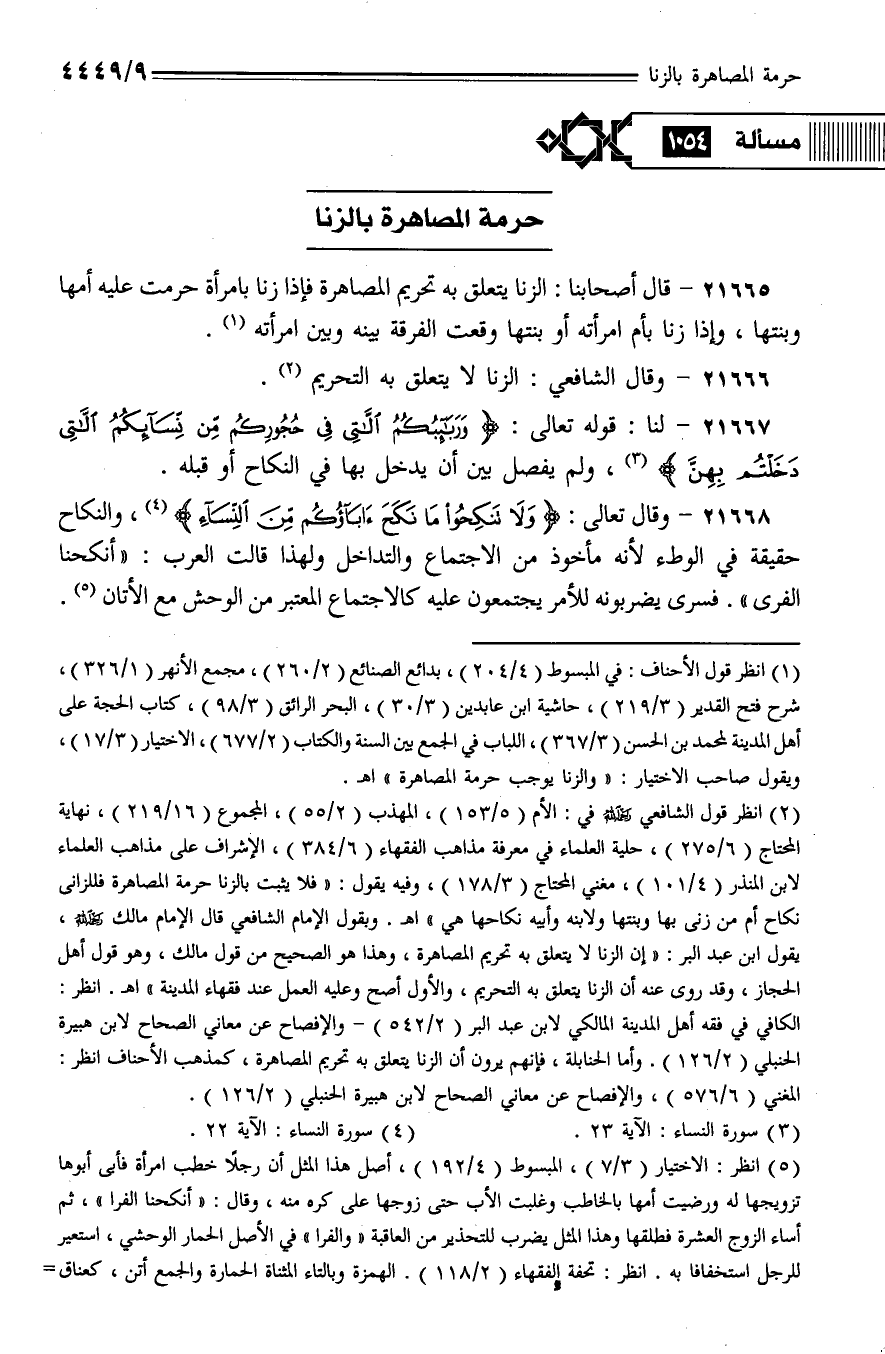 21665 - قال أصحابنا: الزنا يتعلق به تحريم المصاهرة فإذا زنا بامرأة حرمت عليه أمها وبنتها، وإذا زنا بأم امرأته أو بنتها وقعت الفرقة بينه وبين امرأته.
