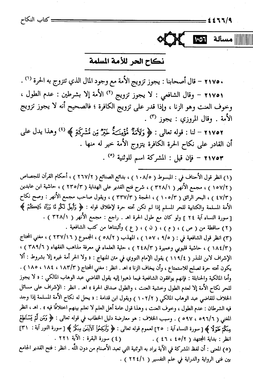 21750 - قال أصحابنا: يجوز تزويج الأمة مع وجود المال الذي تتزوج به الحرة.