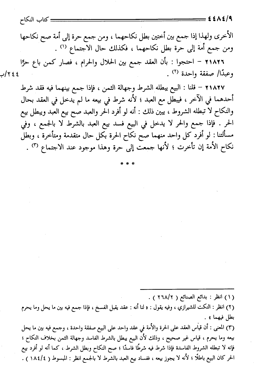 21827 - قلنا: البيع يبطله الشرط وجهالة الثمن، فإذا جمع بينهما فيه فقد شرط أحدهما في الآخر، فيبطل مع العبد؛ لأنه شرط في بيعه ما لم يدخل في العقد بحال والنكاح لا تبطله الشروط، يبين ذلك: أنه لو أفرد الحر والعبد صح بيع العبد ويبطل بيع الحر. فإذا جمع والحر لا يدخل في البيع فسد بيع العبد بالشرط لا بالجمع، وفي مسألتنا: لو أفرد كل واحد منهما صح نكاح الحرة بكل حال متقدمة ومتأخرة، وبطل نكاح الأمة إن تأخرت؛ لأنها جمعت إلى حرة وهذا موجود عند الاجتماع.