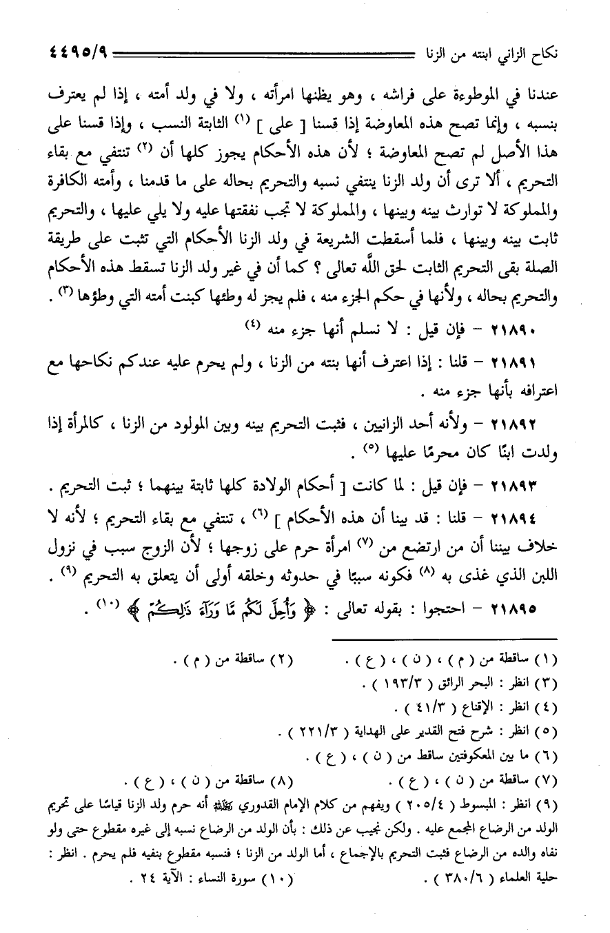 21893 - فإن قيل: لما كانت [أحكام الولادة كلها ثابتة بينهما؛ ثبت التحريم.