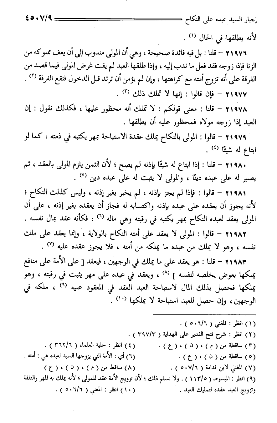 21979 - قالوا: المولى بالنكاح يملك عقدة الاستباحة بمهر يكتبه في ذمته، كما لو ابتاع له شيئًا.