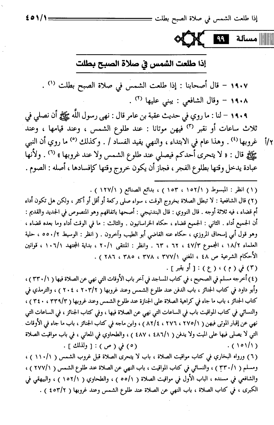 1907 - قال أصحابنا: إذا طلعت الشمس في صلاة الصبح بطلت.