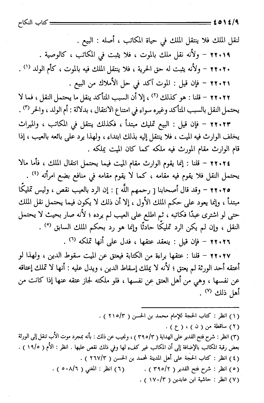 22020 - ولأنه يثبت له حق الحرية، فلا ينتقل الملك فيه بالموت، كأم الولد.