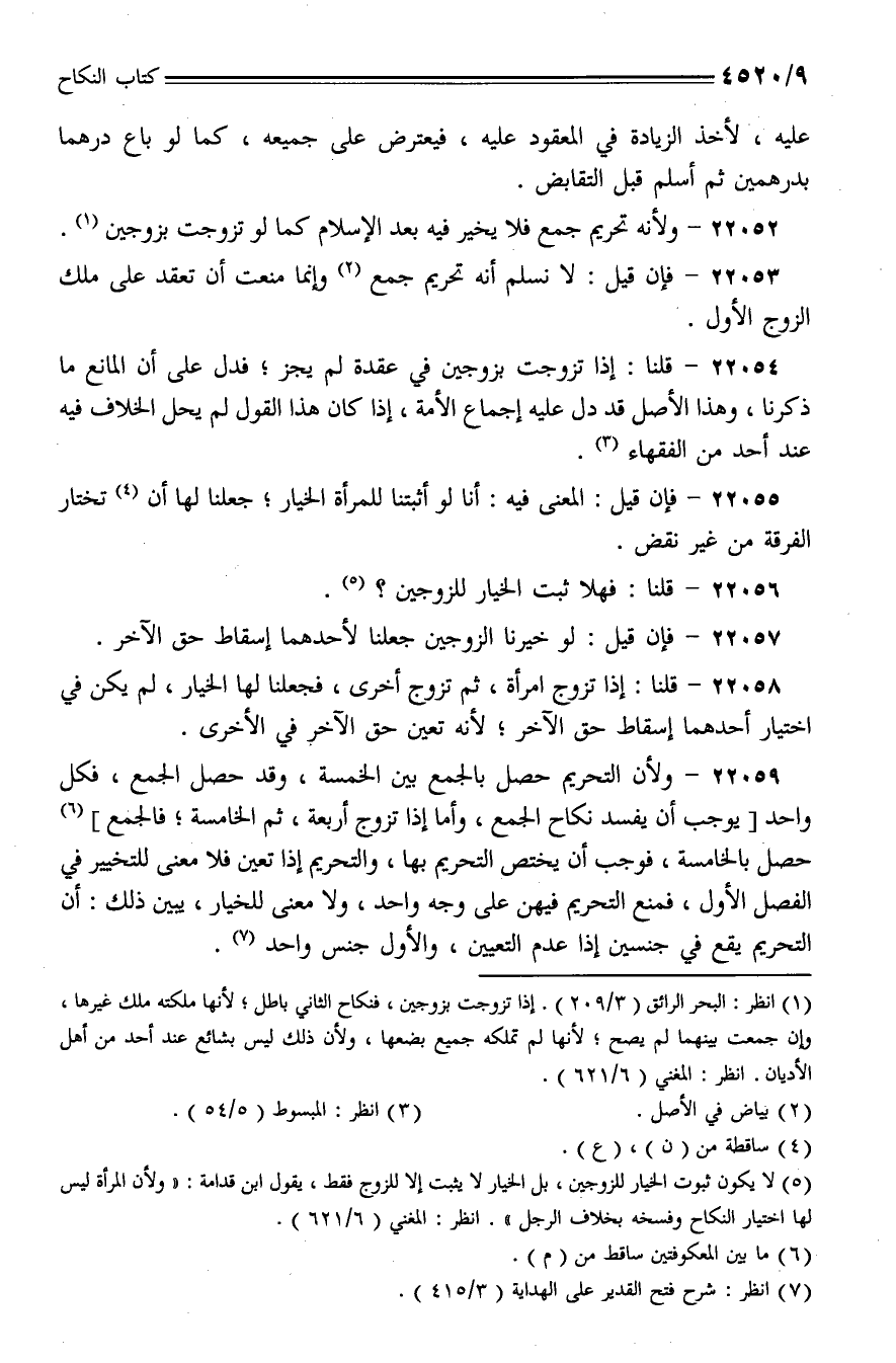 22052 - ولأنه تحريم جمع فلا يخير فيه بعد الإسلام كما لو تزوجت بزوجين.