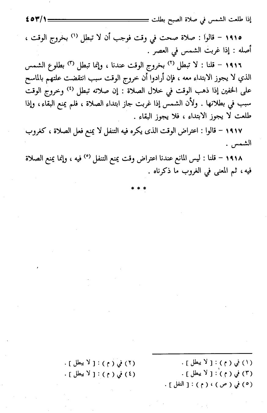 1918 - قلنا: ليس المانع عندنا اعتراض وقت يمنع التنفل فيه، وإنما يمنع الصلاة فيه، ثم المعنى في الغروب ما ذكرناه.