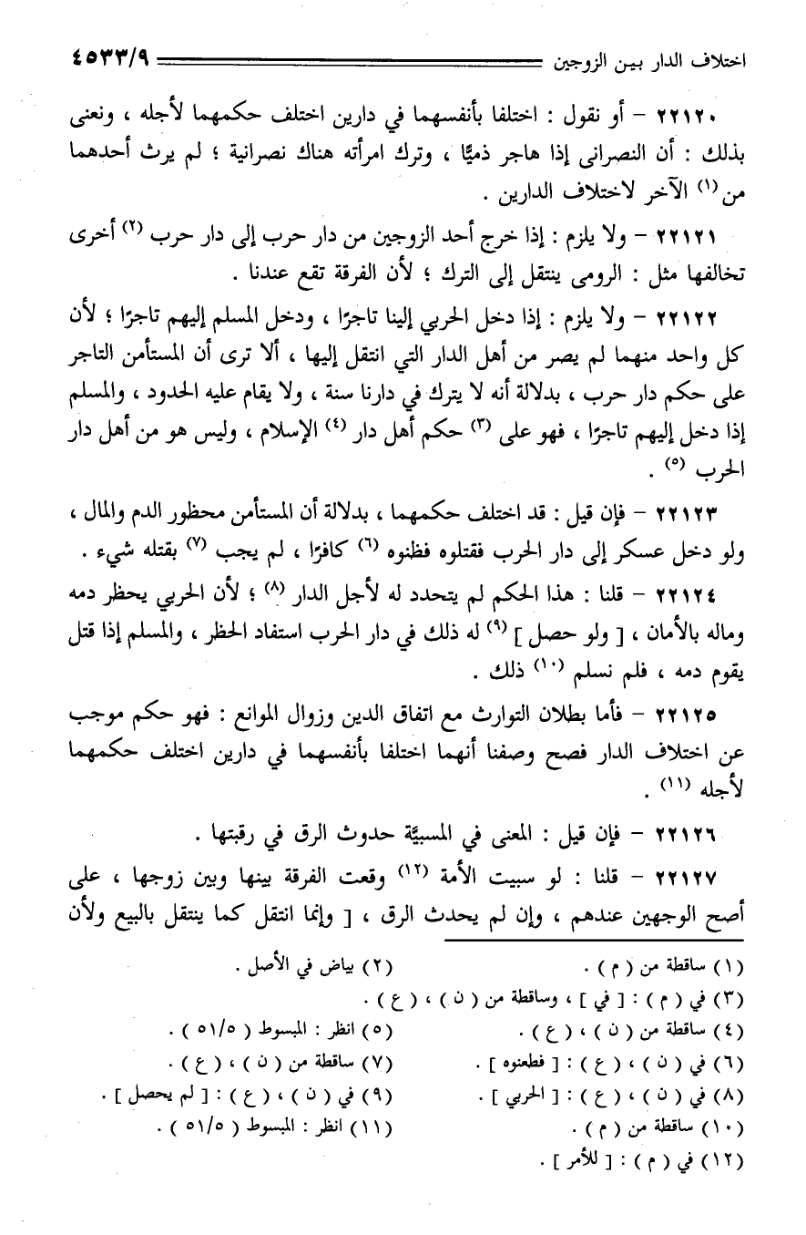 22125 - فأما بطلان التوارث مع اتفاق الدين وزوال الموانع: فهو حكم موجب عن اختلاف الدار فصح وصفنا أنهما اختلفا بأنفسهما في دارين اختلف حكمهما لأجله.