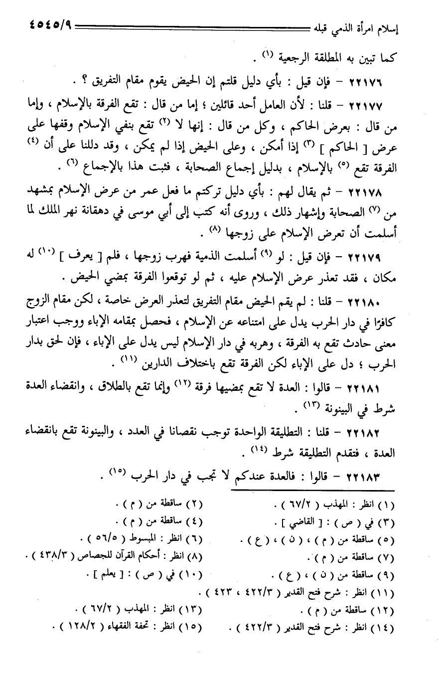 22180 - قلنا: إن لم يقم الحيض مقام التفريق لتعذر العرض خاصة، لكن مقام الزوج كافرًا في دار الحرب يدل على امتناعه عن الإسلام، فحصل بمقامه الإباء ووجب اعتبار معنى حادث تقع به الفرقة، وهربه في دار الإسلام ليس يدل على الإباء، فإن لحق بدار الحرب؛ دل على الإباء لكن الفرقة تقع باختلاف الدارين.