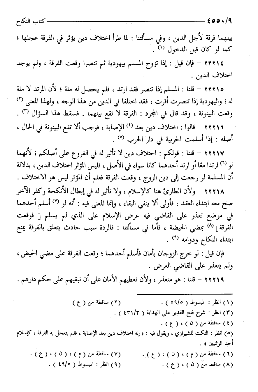 22217 - قلنا: قولكم: اختلاف دين لا تأثير له في الفروع على أصلكم؛ لأنهما لو ارتدا معًا أو ارتد أحدهما كانا سواء في الأصل، فليس المؤثر اختلاف الدين، بدلالة أن المسلمة لو رجعت إلى دين الزوج، وقعت الفرقة فعلم أن المؤثر ليس هو الاختلاف.
