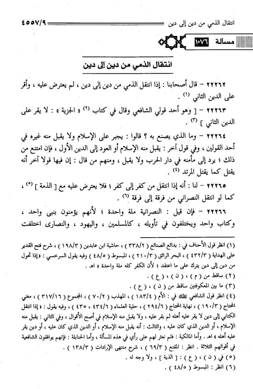22262 - قال أصحابنا: إذا انتقل الذمي من دين إلى دين، لم يعترض عليه، وأقر على الدين الثاني.