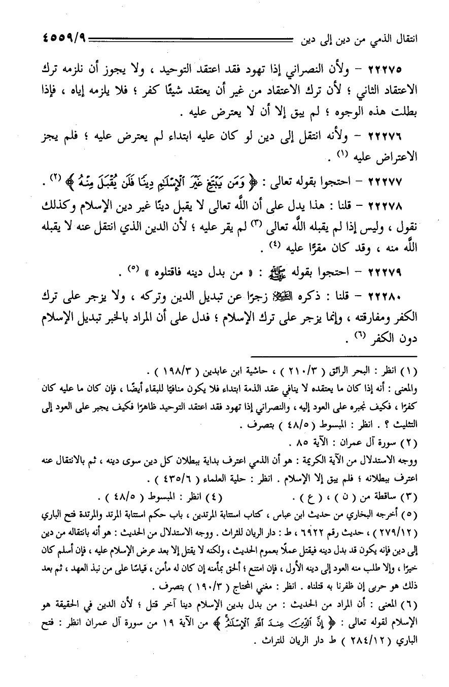 22280 - قلنا: ذكره - عليه السلام - زجرًا عن تبديل الدين وتركه، ولا يزجر على ترك الكفر ومفارقته، وإما يزجر على ترك الإسلام؛ فدل على أن المراد بالخبر تبديل الإسلام دون الكفر.