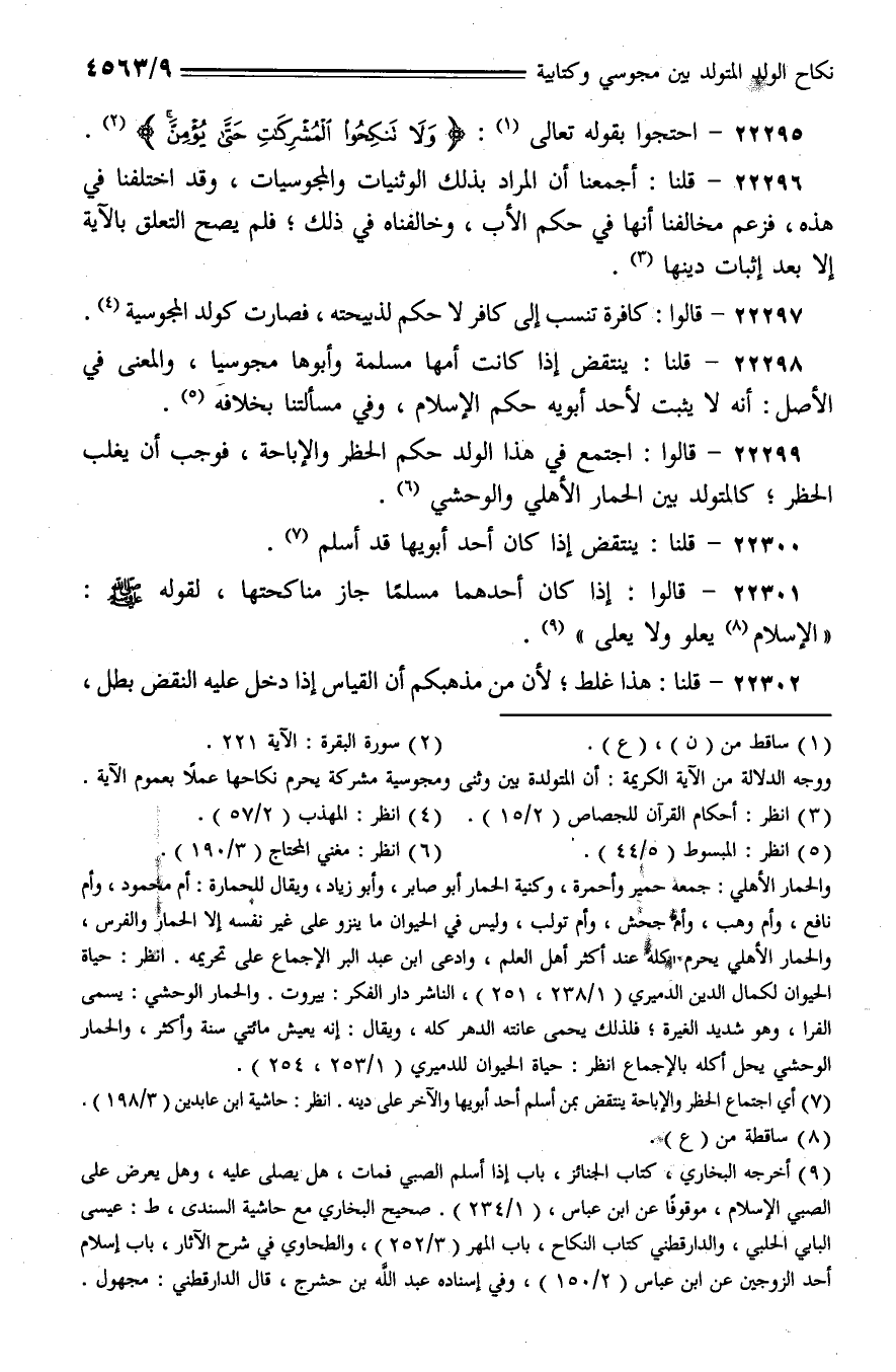 22297 - قالوا: كافرة تنسب إلى كافر لا حكم لذبيحته، فصارت كولد المجوسية.