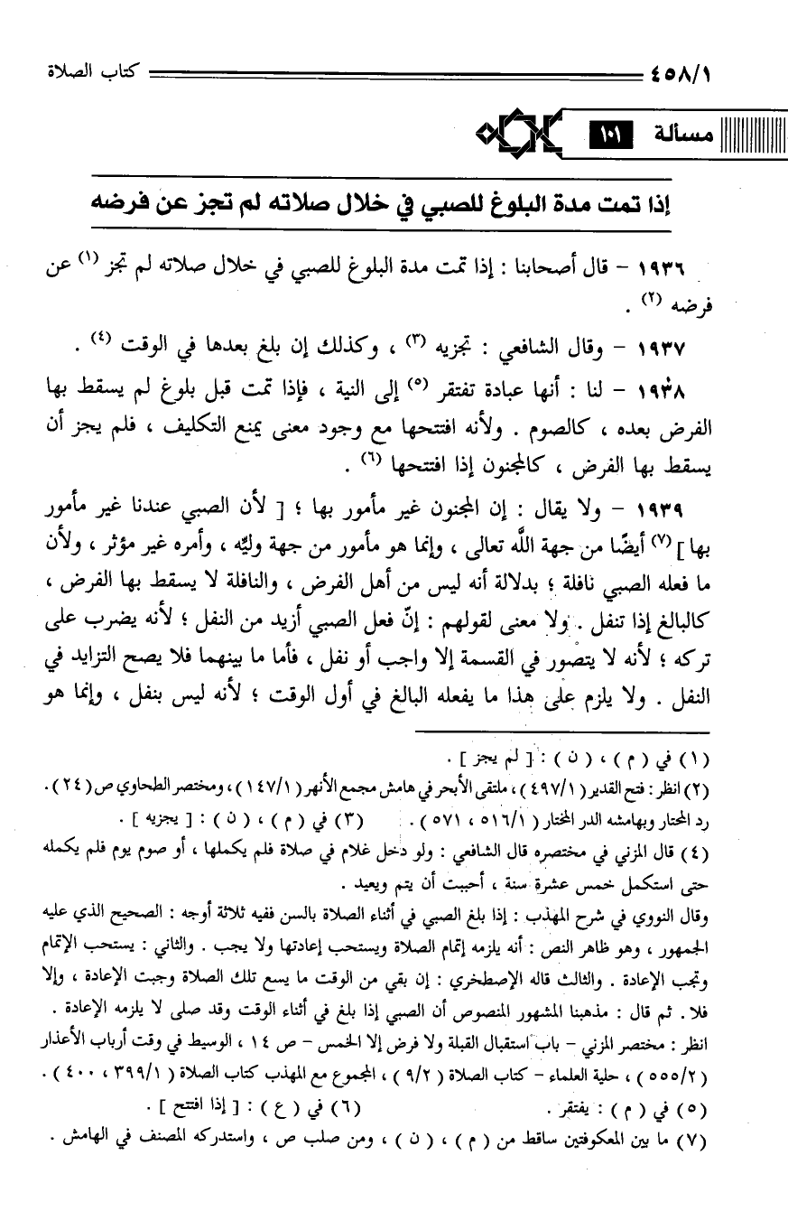1936 - قال أصحابنا: إذا تمت مدة البلوغ للصبي في خلال صلاته لم تجز عن فرضه.
