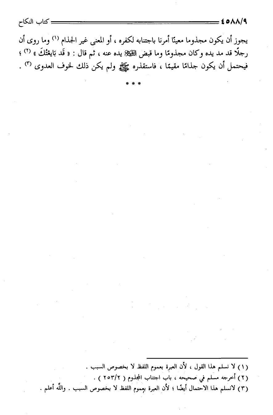 يجوز أن يكون مجذومًا معينًا أمرًا باجتنابه لكفره، أو المعنى غير الجذام وما روي أن رجلًا قد مد يده وكان مجذومًا وما قبض - عليه السلام - يده عنه، ثم قال: (قد بايعتك)؛ فيحتمل أن يكون جذامًا مقيمًا، فاستقذره - صلى الله عليه وسلم - ولم يكن ذلك لخوف العدوى.