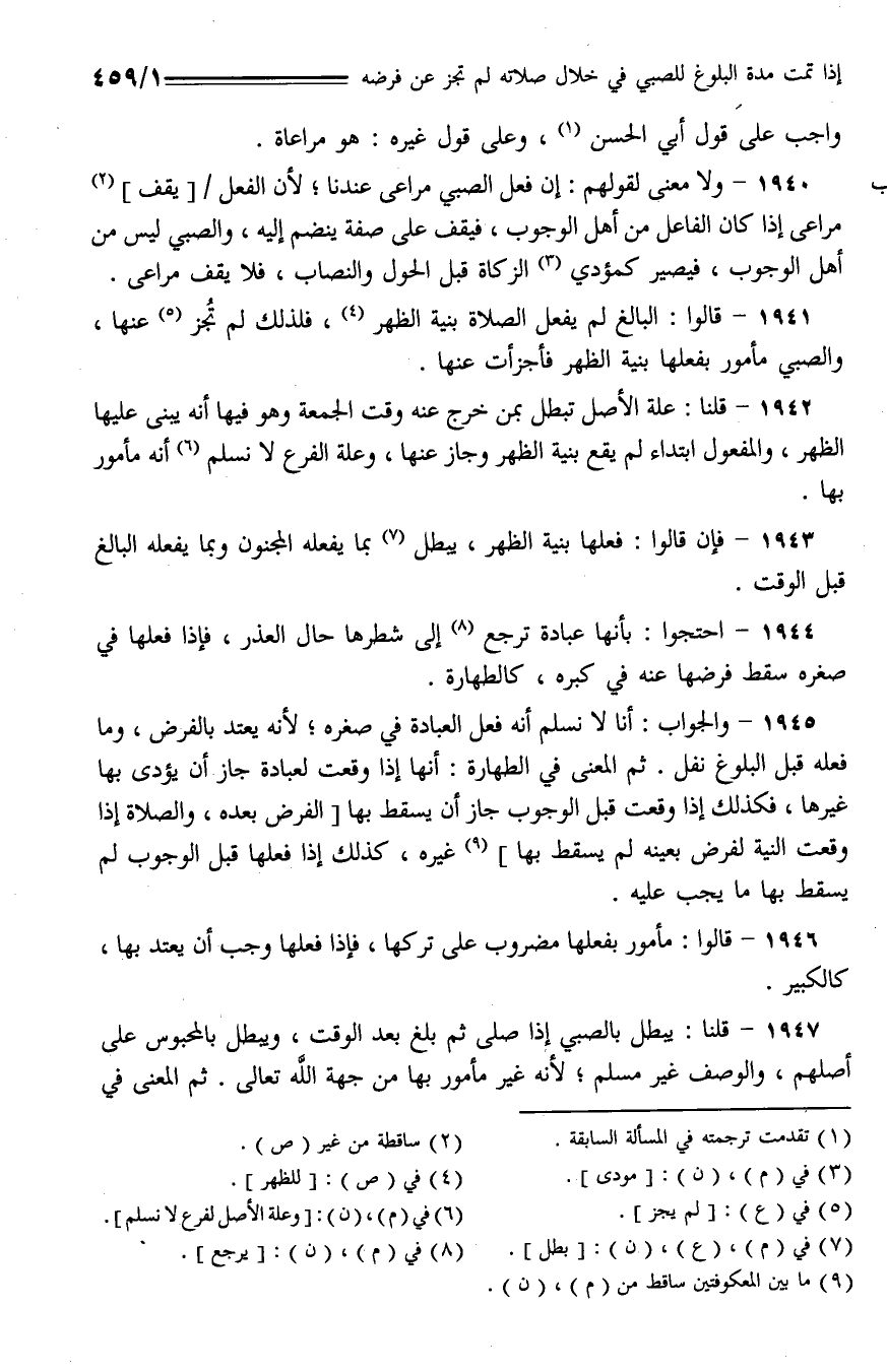 1941 - قالوا: البالغ لم يفعل الصلاة بنية الظهر، فلذلك لم تُجز عنها، والصبي مأمور بفعلها بنية الظهر فأجزأت عنها.