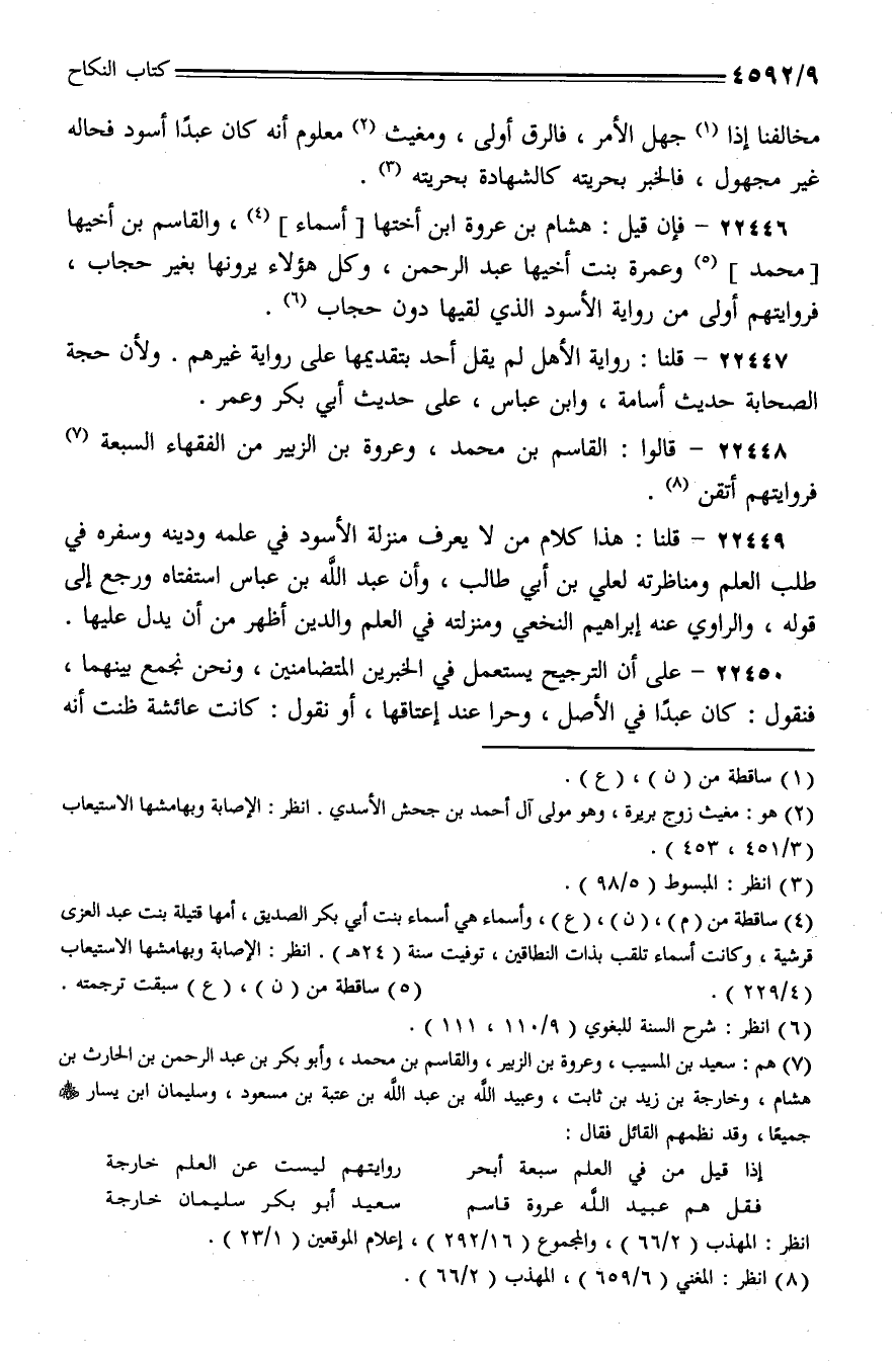 22449 - قلنا: هذا كلام من لا يعرف منزلة الأسود في علمه ودينه وسفره في طلب العلم ومناظرته لعلي بن أبي طالب، وأن عبد الله بن عباس استفتاه ورجع إلى قوله، والراوي عنه إبراهيم النخعي ومنزلته في العلم والدين أظهر من أن يدل عليها.