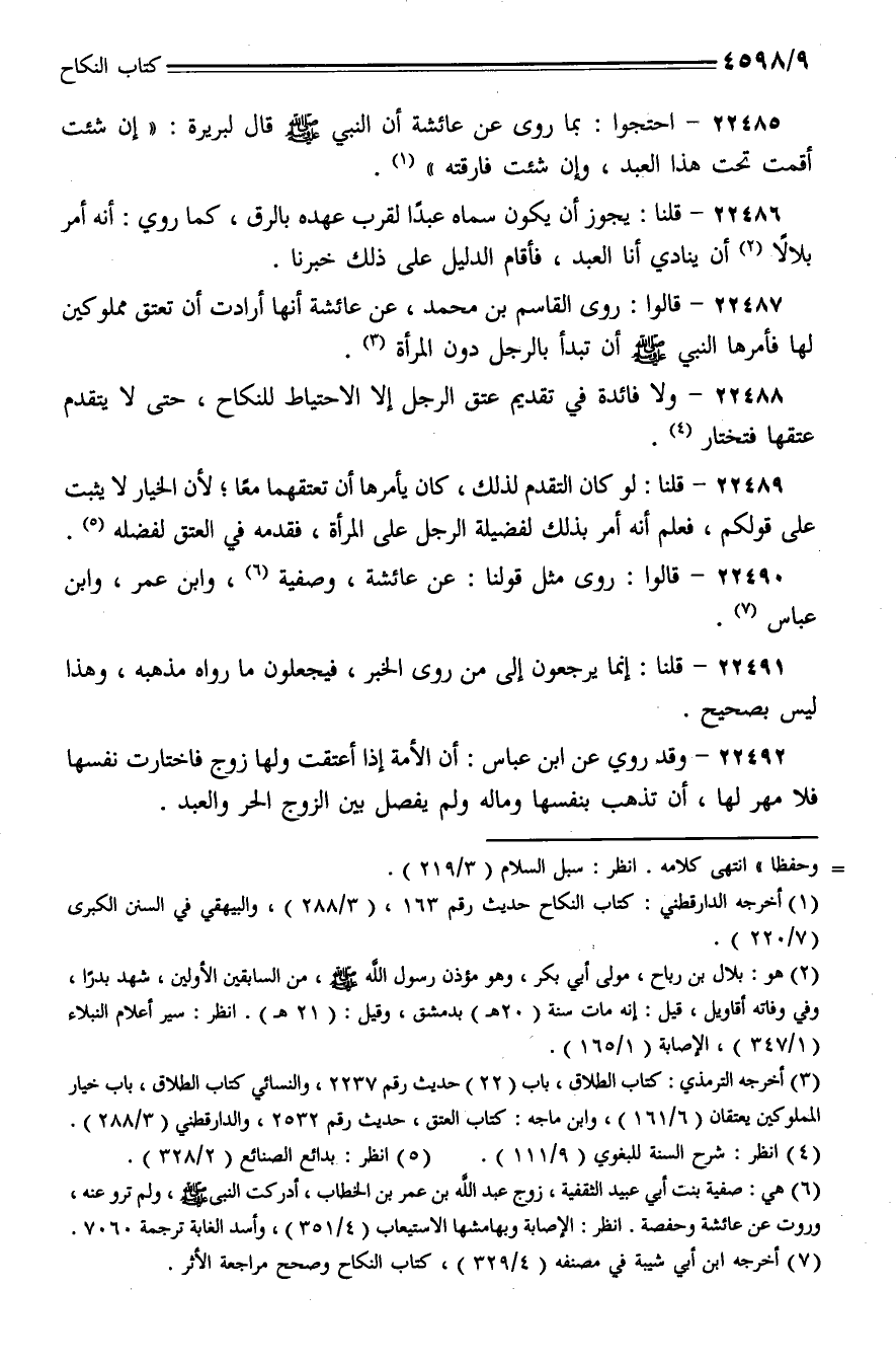 22490 - قالوا: روى مثل قولنا: عن عائشة، وصفية، وابن عمر، وابن عباس.