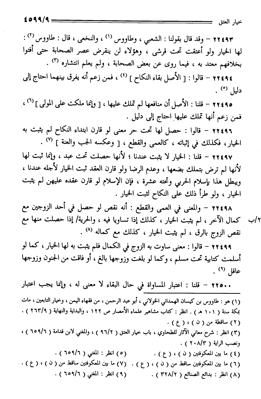 22493 - وقد قال بقولنا: الشعبي، وطاووس، والنخعي، قال: طاووس: لها الخيار ولو أعتقت تحت قرشي، وهؤلاء لن ينقرض عصر الصحابة حتى أفتوا بخلافهم معتد به، فيما روى عن بعض الصحابة، ولم يعلم انتشاره.