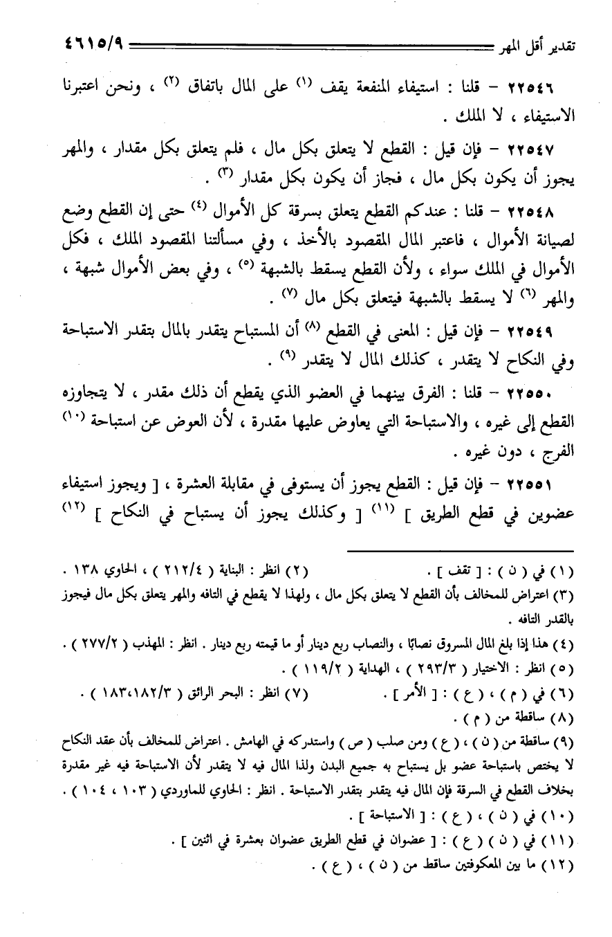 22549 - فإن قيل: المعنى في القطع أن المستباح يتقدر بالمال بتقدر الاستباحة وفي النكاح لا يقدر، كذلك المال لا يتقدر.