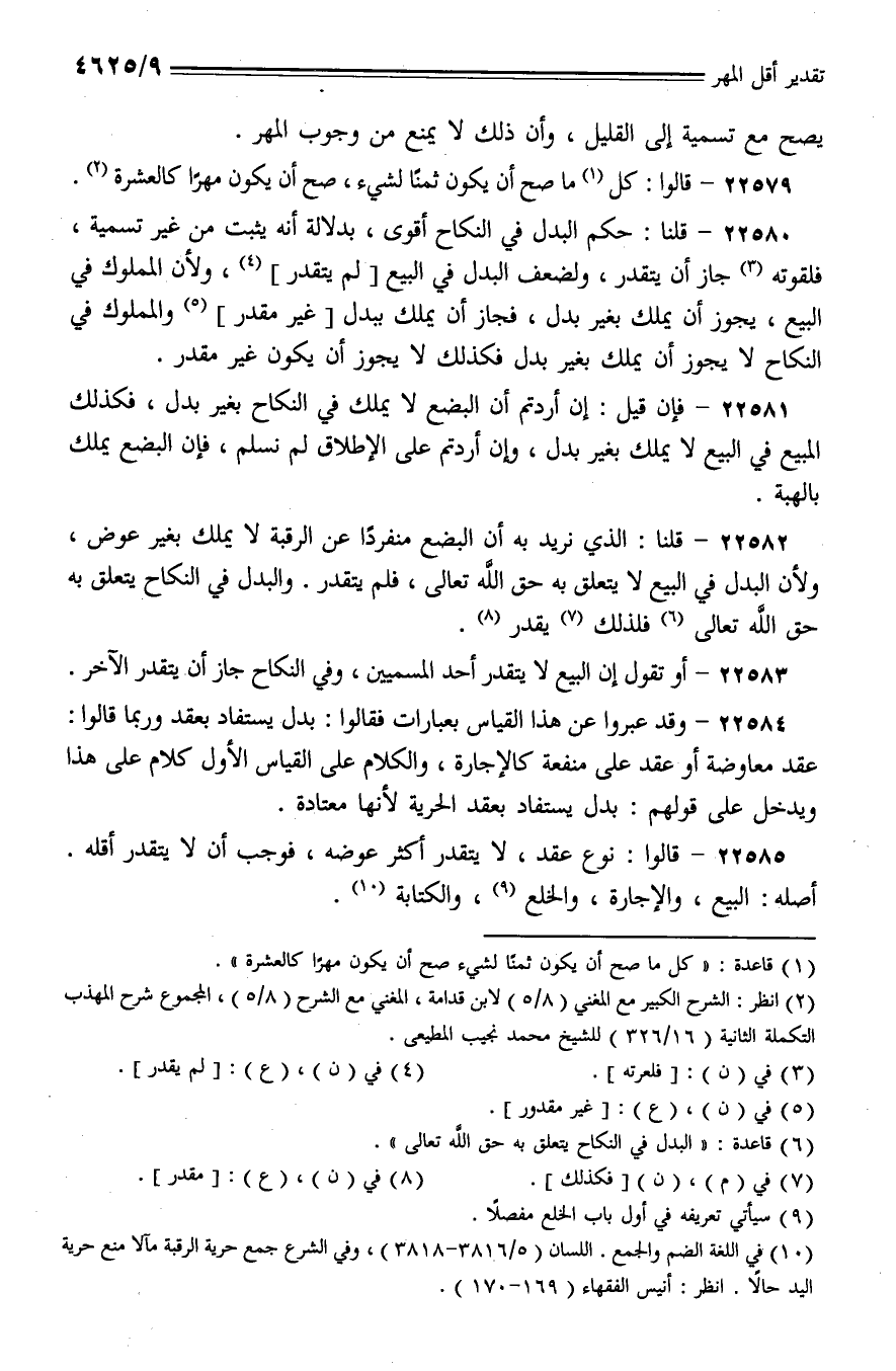22579 - قالوا: كل ما صح أن يكون ثمنًا لشيء، صح أن يكون مهرًا كالعشرة.
