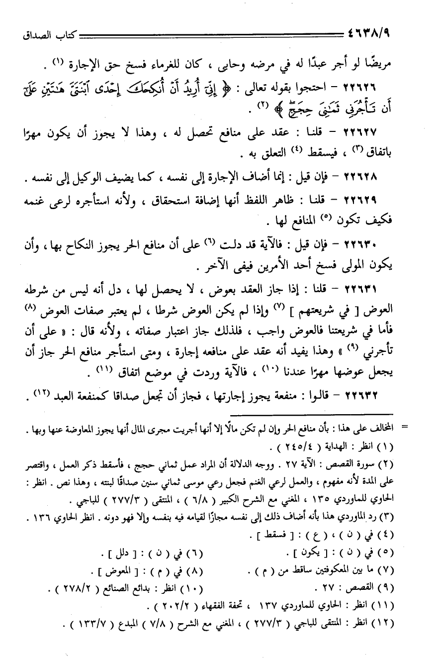 22632 - قالوا: منفعة يجوز إجارتها، فجاز ن تجعل صداقًا كمنفعة العبد.