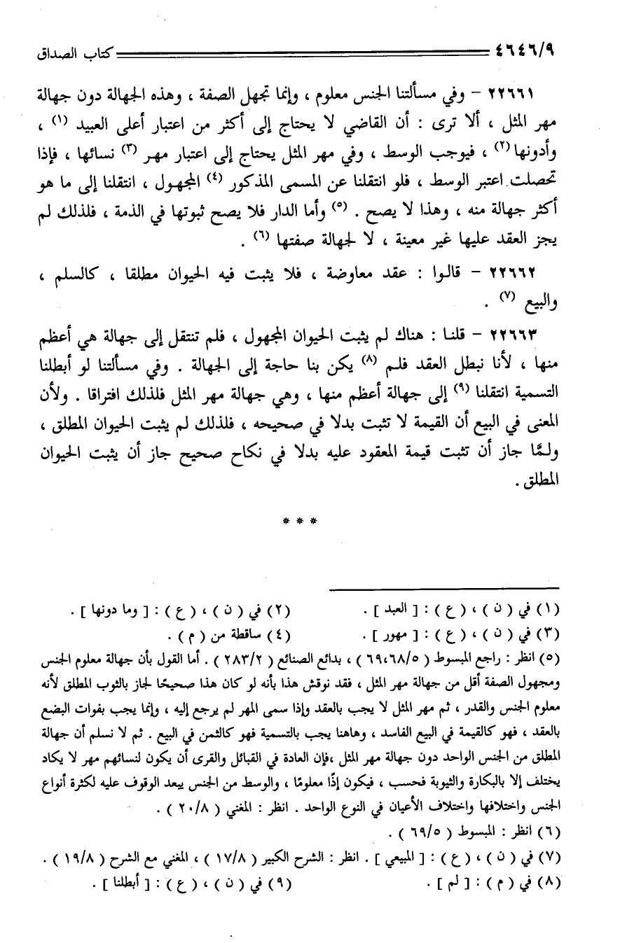 22661 - وفي مسألتنا الجنس معلوم، وإنما تجهل الصفة، وهذه الجهالة دون جهالة مهر المثل، ألا ترى: أن القاضي لا يحتاج إلى أكثر من اعتبار أعلى العبيد، وأدونها، فيوجب الوسط، وفي مهر المثل يحتاج إلى اعتبار مهر نسائها، فإذا تحصلت اعتبر الوسط، فلو انتقلنا عن المسمى المذكور المجهول، انتقلنا إلى ما هو أكثر جهالة منه، وهذا لا يصح. وأما الدار فلا يصح ثبوتها في الذمة، فلذلك لم يجز العقد عليها غير معينة، لا لجهالة صفتها.