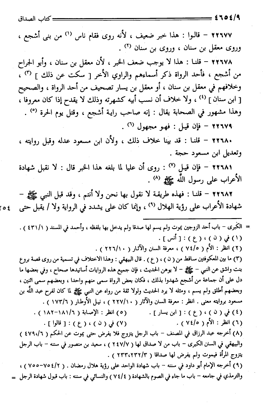 22677 - قالوا: هذا خبر ضعيف، لأنه روى فقام ناس من بني أشجع، وروى معقل بن سنان، وروى بن سنان.