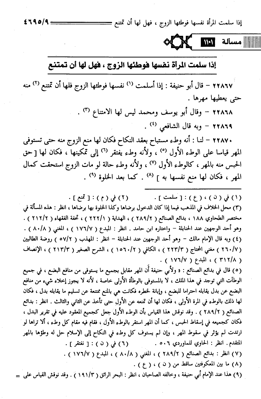 22868 - وقال أبو يوسف ومحمد ليس لها الامتناع.