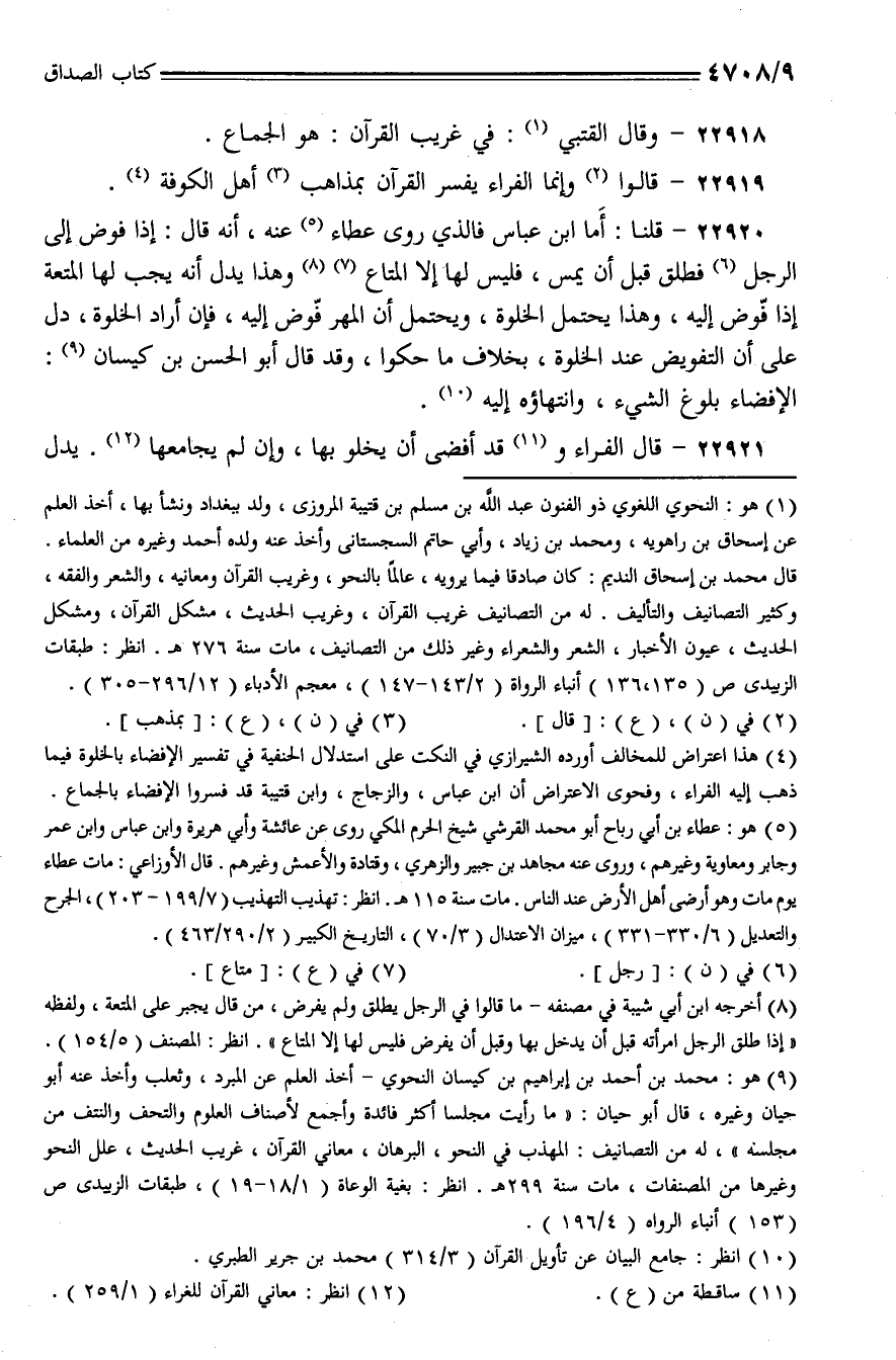 22919 - قالوا وإنما الفراء يفسر القرآن بمذاهب أهل الكوفة.